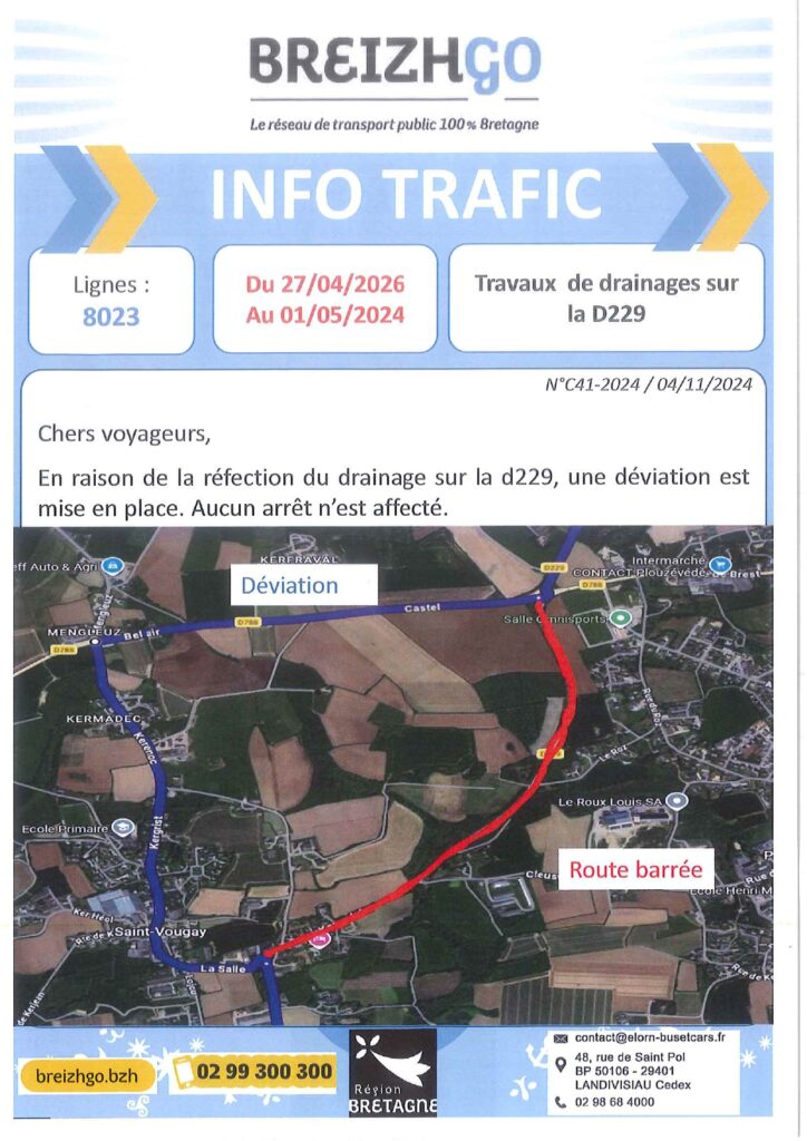 Chers voyageurs, en raison de la réfection du drainage sur la d229, une déviation est mise en place sur la ligne 8023. Aucun arrêt n’est affecté.